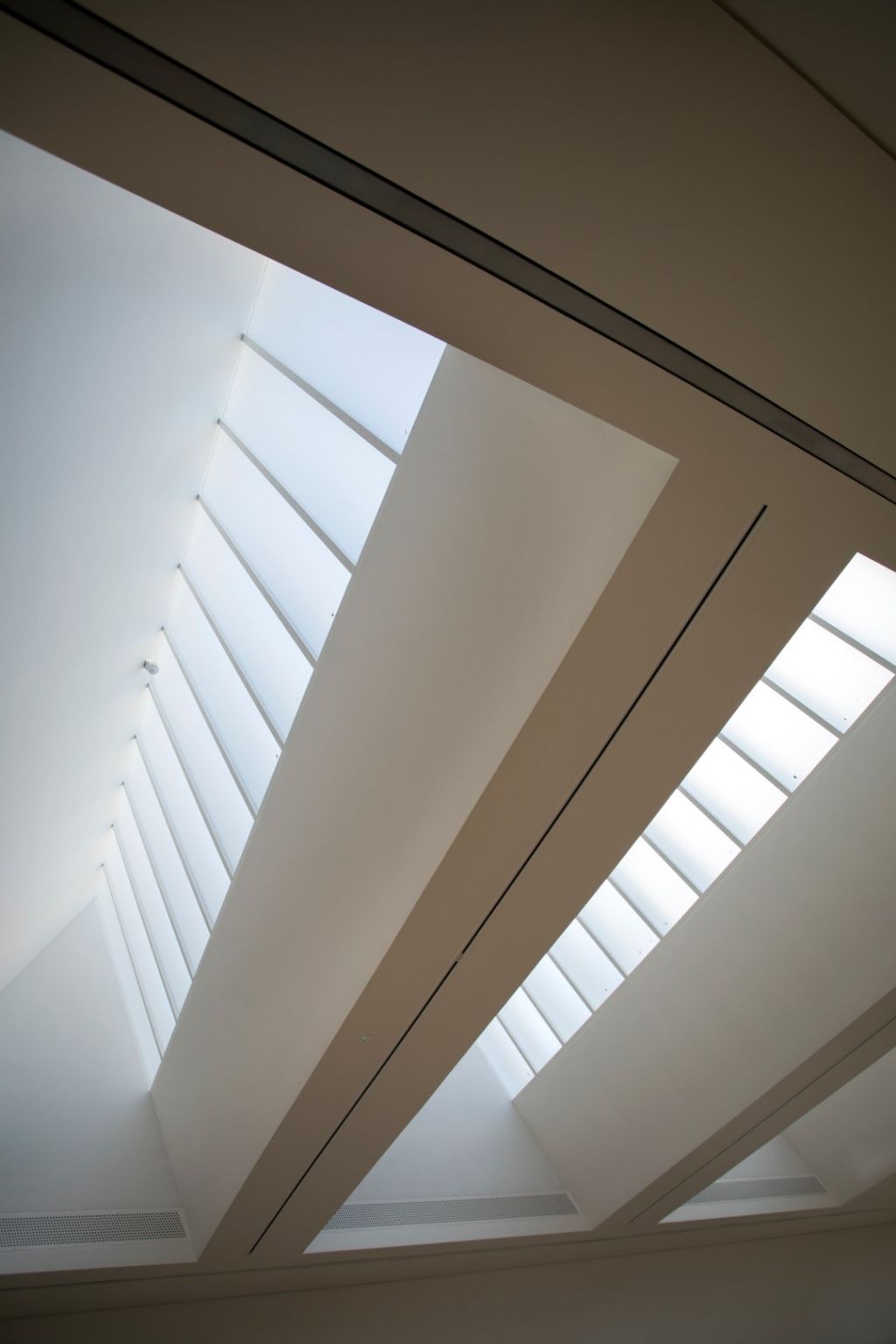 Hoewel het zo compact is, geeft het toch een ruimtegevoel dankzij een slimme behandeling van de ramen. De ramen laten veel licht, maar weinig zicht binnen. In de ingangspartij die een beetje terugspringt, zitten wel grote ramen die een gevoel van openheid bieden. Volgens Bart Verschaffel, van de vakgroep Architectuur & Stedenbouw, zit het ontwerp heel juist in zijn robuustheid en in de balans tussen open en gesloten. Ook de interne vormgeving is eenvoudig. Drie zalen boven elkaar, die dezelfde grootte hebben.