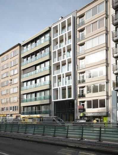 Veelaert Architecten stond in voor het ontwerp van het project ‘Living is Great’ dat bestaat uit 24 appartementen en een handelsruimte op ’t gelijkvloers. De voorgevel wordt gekenmerkt door witte speelse elementen in een rustig zwart granieten kader, waarmee het architectenbureau de combinatie van lichtvoetigheid en massiviteit wil bewerkstellingen.