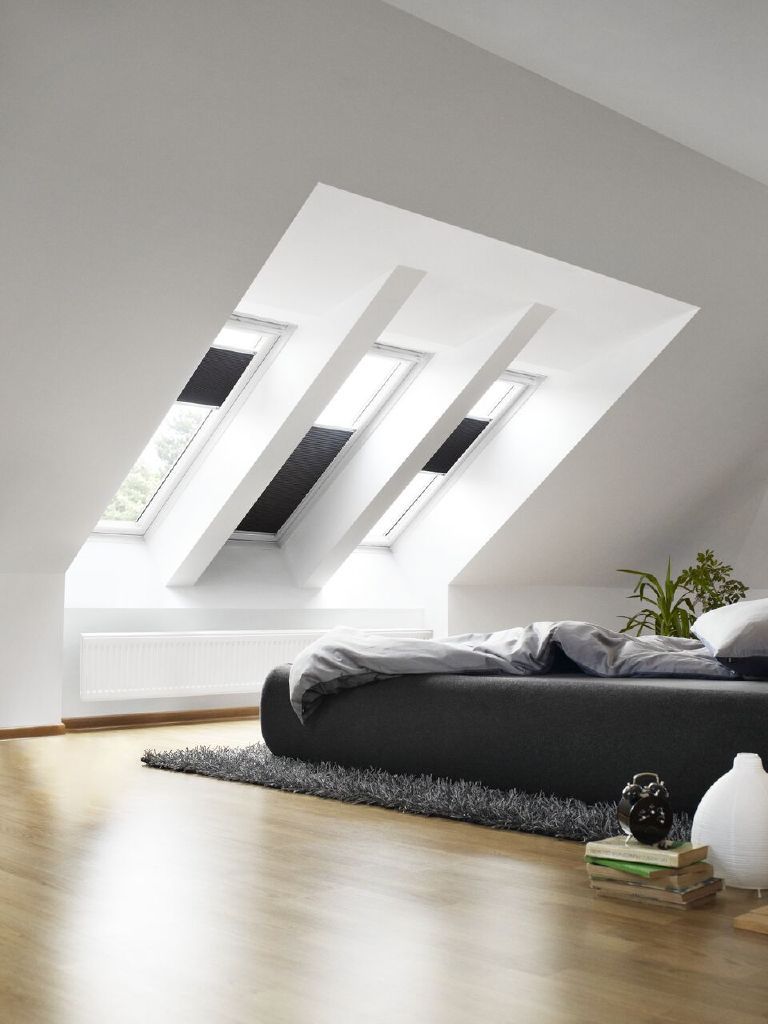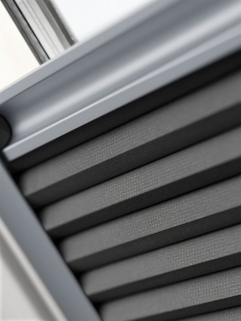 Een huis dat baadt in natuurlijk licht, biedt een stimulerende sfeer binnenshuis. Omgekeerd is het belangrijk dat de slaapkamer volledig donker is om van een goede nachtrust te kunnen genieten. Het nieuwe Velux multifunctioneel vouwgordijn voorkomt dat licht binnenvalt, dankzij de verduisterende stof met dubbele plooi. Het isolerend vermogen van het VELUX multifunctioneel vouwgordijn werd verbeterd: de honingraatstructuur met aluminium tussenlaag beperkt het gevoel dat er koude binnenkomt van buitenaf. Om het vouwgordijn zo goed mogelijk aan te passen aan het interieur of om kamers een decoratieve toets te geven, voorziet Velux een gamma met 12 kleurschakeringen. Het multifunctioneel vouwgordijn kan men op elke hoogte plaatsen om zo de lichtinval aan te passen aan de behoeften en het moment van de dag.