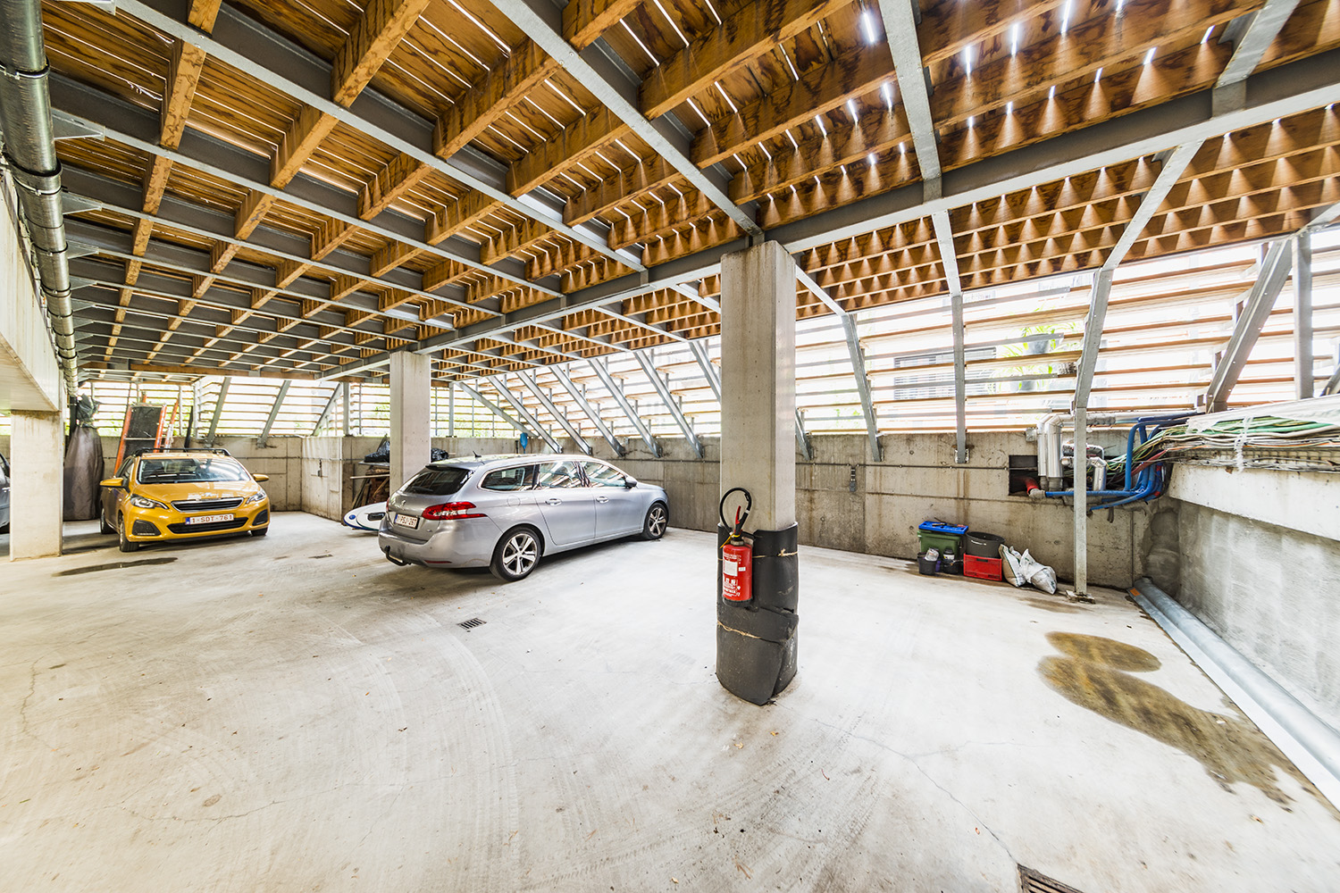 Bij het ontwerp van de garage werd overigens al rekening gehouden met deze evolutie van wagenbezit naar wagengebruik. Zo werd de parking halfondergronds uitgevoerd, zodat deze later makkelijk een herbestemming kan krijgen als werk- of atelierruimte met daglicht. “Als architecten houden we rekening met aanpasbaarheid en denken we na over hoe die met CO2-intensief materiaal gebouwde parkeerkelders ook binnen 10, 20 of 30 jaar relevant kunnen blijven”, verduidelijkt Lode Goethals. “En in tussentijd zorgt zo een halfondergrondse parking voor een groter veiligheidsgevoel. Het is er aangenamer vertoeven.”