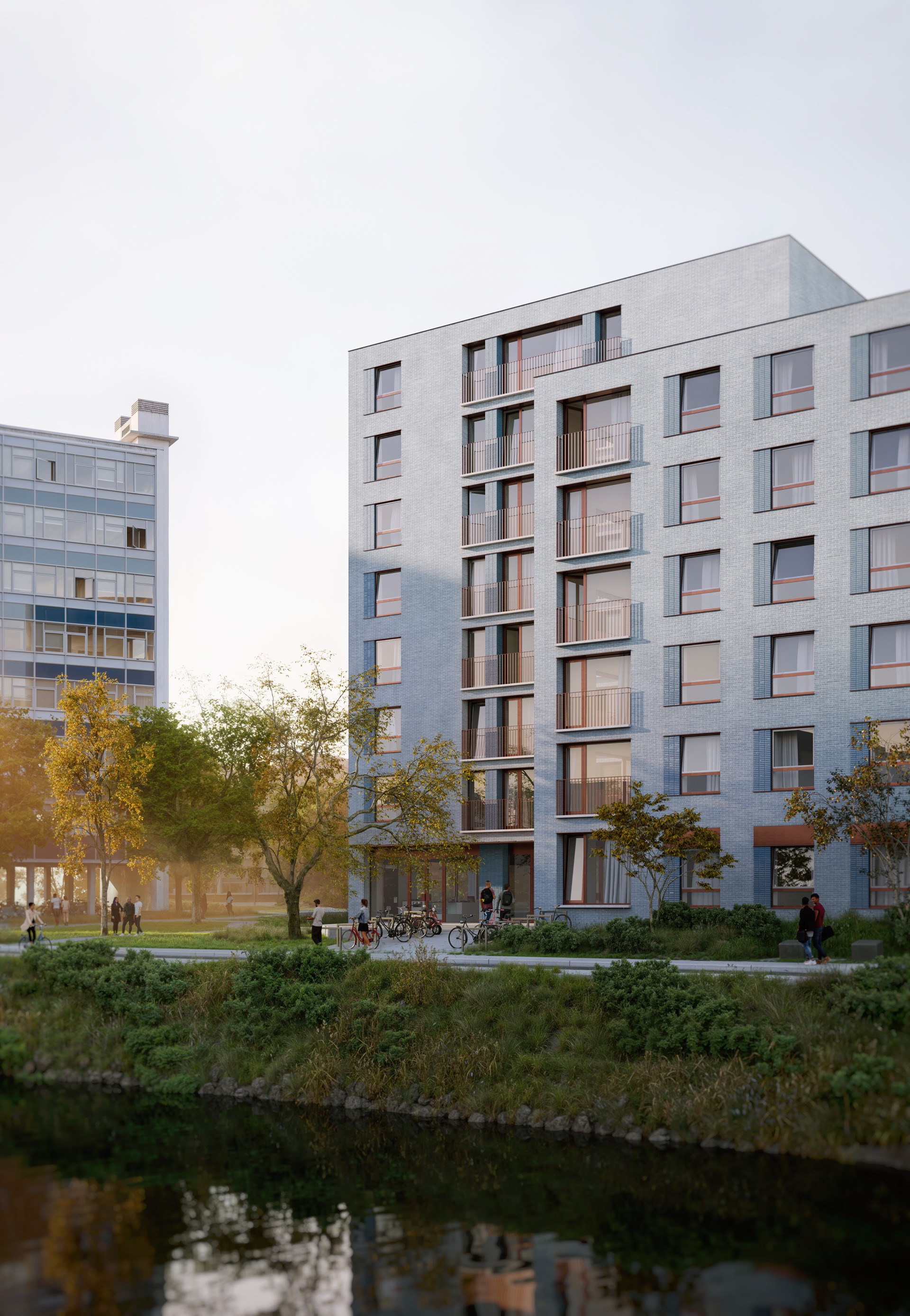 Verharde site van Gentse watermaatschappij maakt plaats voor studentencomplex en nieuw publiek park (360 architecten & kollektif landscape)