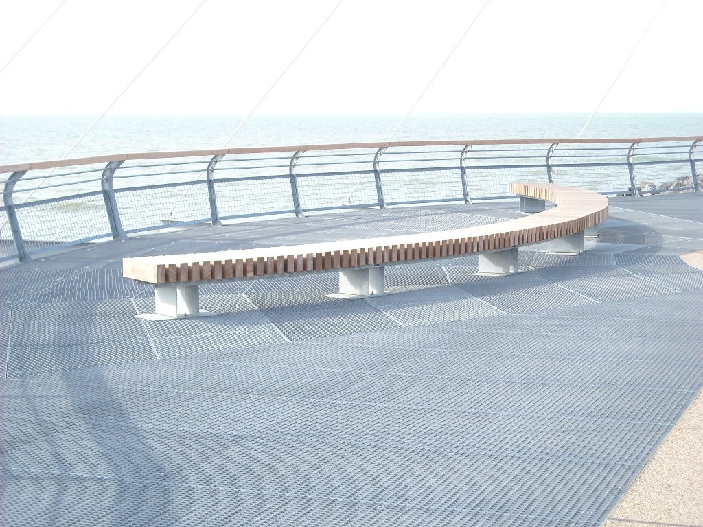 De constructie, voltooid in de eerste helft van 2012, bestaat uit thermisch verzinkt staal, wat zorgt voor een lange levensduur en hoge slijtvastheid. Deze keuze is essentieel vanwege de blootstelling aan zoute zeelucht en de veelzijdigheid van het pad, dat toegankelijk is voor voetgangers, fietsers en kinderwagens. De kwaliteit van elk onderdeel van de constructie wordt streng gecontroleerd, inclusief trek- en kerfslagproeven van de gebruikte materialen.