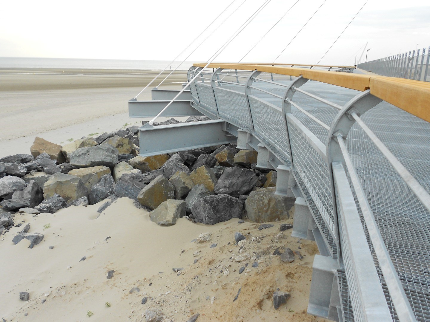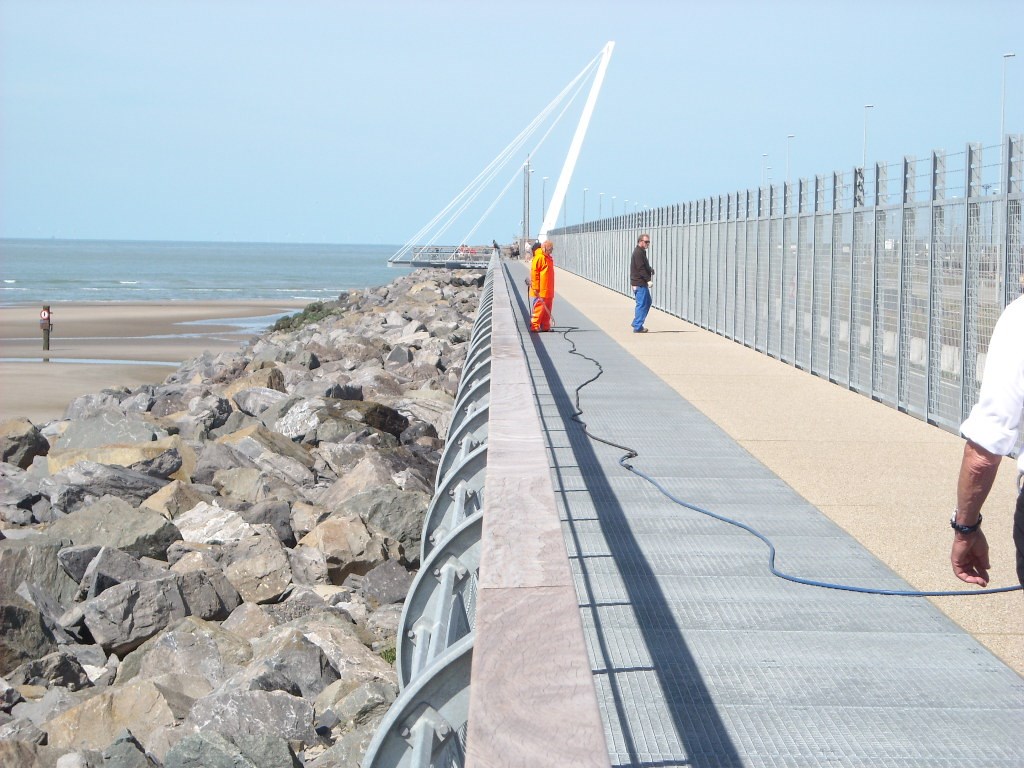 De iconische St.George’s Day-wandeling in Zeebrugge is recentelijk uitgebreid met 500 meter, waardoor de route nu rechtstreeks toegang biedt tot de zee. Deze uitbreiding maakt het mogelijk voor het grote publiek om te genieten van de uitgestrekte uitzichten over de zee en de bedrijvigheid van de nabijgelegen haven. De duurzame staalconstructie, behandeld met ZINQ voor langdurige bescherming tegen corrosie, vormt de basis van dit nieuwe wandelpad.