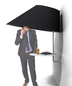 Designlamp BuzziShade verlicht je gesprek en weert nieuwsgierige blikken. Door de akoestische isolering kunnen gesprekken niet worden afgeluisterd en wordt geluidshinder van buitenaf - muziek of geroezemoes - geminimaliseerd. Op die manier kan je een privételefoongesprek voeren onder de lamp, onder vier ogen praten met je gesprekspartner, tot rust komen in de drukte, enz.