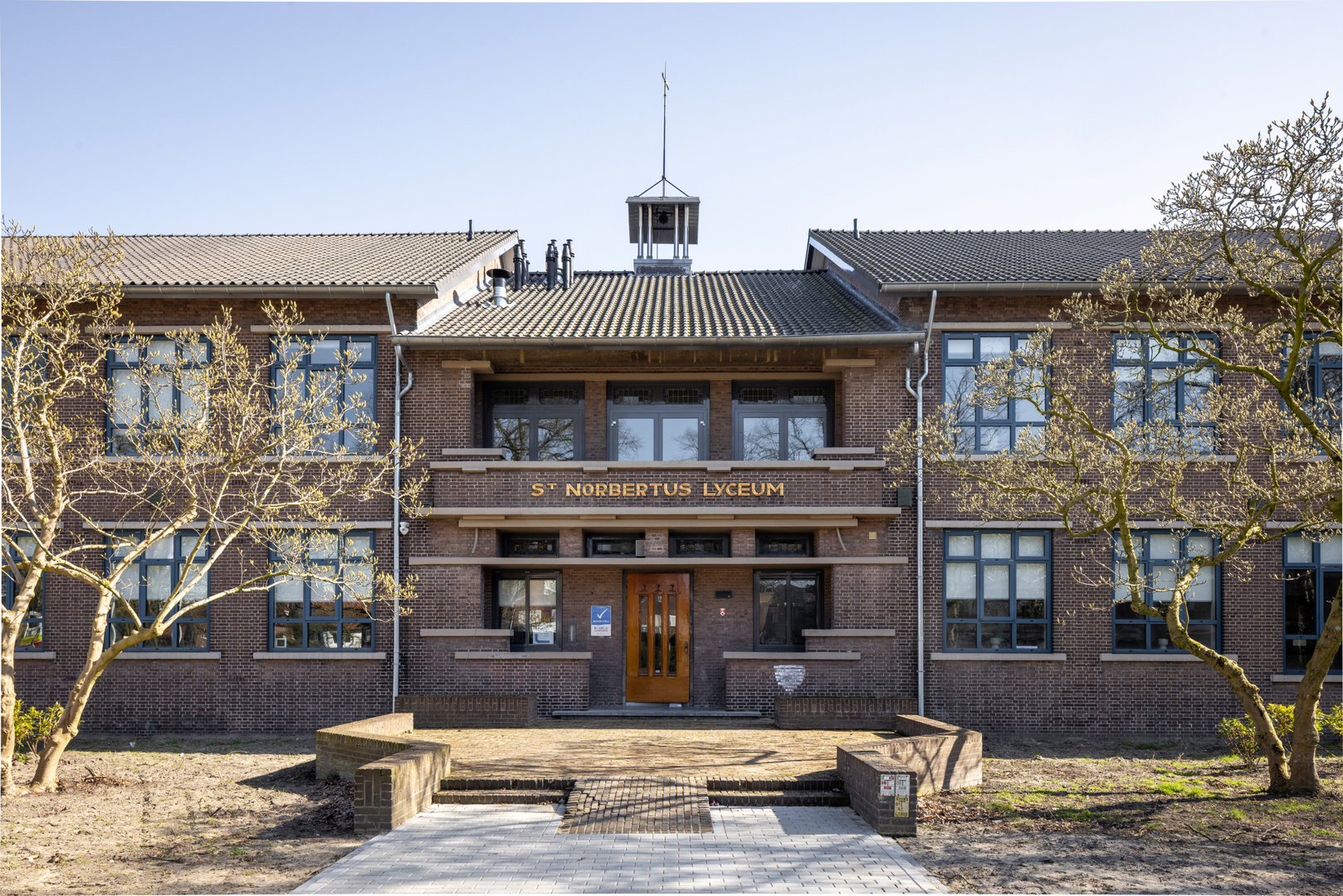 Het Norbertusgebouw in Roosendaal kent een rijke geschiedenis. Sinds 1923 is het een baken van onderwijs in de stad. Door de jaren heen onderging het pand tal van uitbreidingen, waarbij de oorspronkelijke structuur steeds verder naar de achtergrond verdween. Met de fusie van het Norbertus College en het Gertrudis Lyceum in 2017 ontstond de behoefte aan een samenhangend, flexibel en toekomstbestendig schoolgebouw. BDG Architecten kreeg de opdracht om deze opgave te vertalen naar een doordacht ontwerp waarin traditie en moderniteit elkaar versterken. De vernieuwbouw – zoals projectarchitect Herma Kerssies het noemt – werd in 2025 opgeleverd en inmiddels volledig in gebruik genomen.