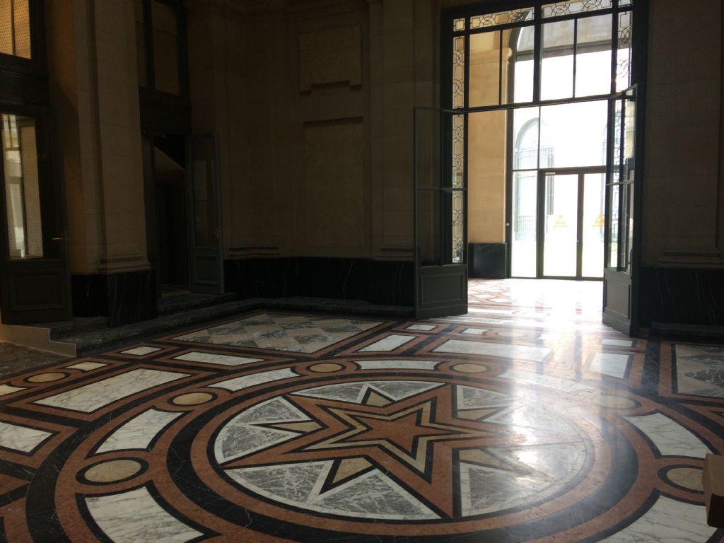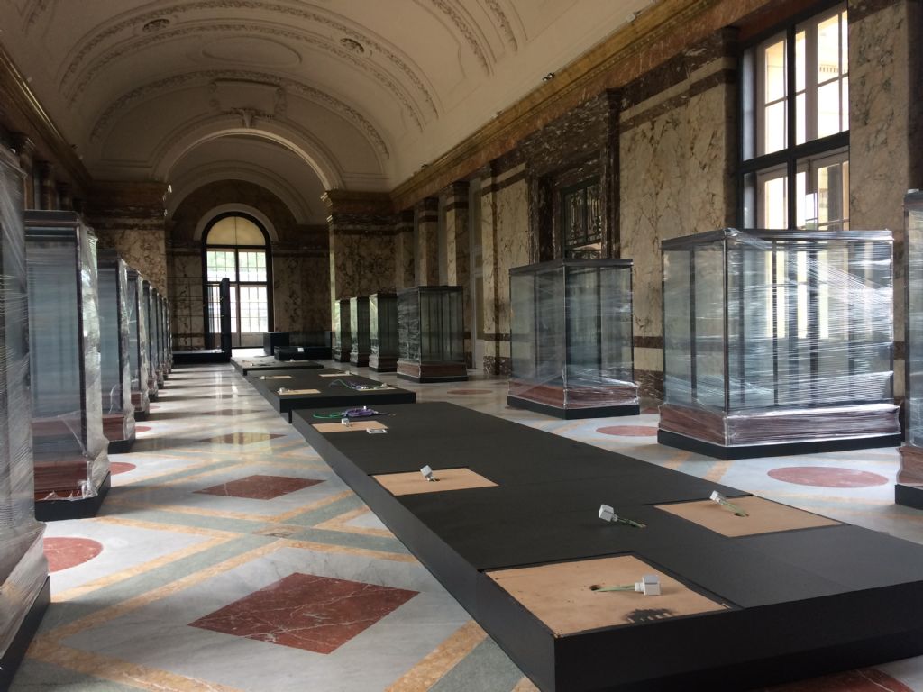 Vloeren werden uitgebroken voor het aanleggen van hellende vlakken voor personen met beperkte mobiliteit. Marmeren vloeren en wanden zijn daar waar nodig gerestaureerd. De geklasseerde vitrinekasten zijn ter plaatse gerestaureerd. In de marmerzalen werden ze op een technische sokkel geplaatst zodat de technieken (elektriciteit, multimedia, klimaatregeling) konden worden geïntegreerd. De verlichting is in de bovensokkel geplaatst. De vitrines zijn aangevuld met nieuwe vitrines waardoor een hedendaags modulair systeem wordt bekomen.