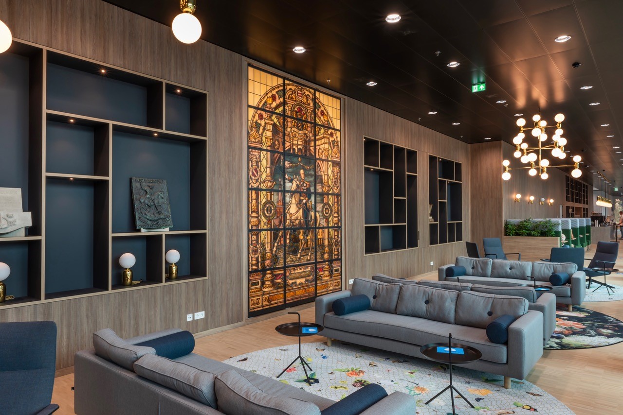 Voor de akoestiek werd een beroep gedaan op Print Acoustics by Triplaco. Common affairs architecten heeft in het technisch ontwerp de verdere kleur en materiaalstaat van het interieur mee bepaald. Op ieder verdiep zijn blauwe en groene zachte kleurtinten terug te vinden in combinatie met hout en aardse tinten. Voor Uni kleur werd voornamelijk geput uit de Abet Laminati collectie van Print Acoustics by Triplaco en voor houtdecoren werd een groot deel uitgevoerd in echt houtfineer Kwartier Eik, uitgeselecteerd door Dedrie Architecten in de productiehal van Decospan in Menen, België. Triplaco heeft deze selectie dan getransformeerd tot hoogwaardig absorberende Nano geperforeerde akoestische panelen Type N. Daarnaast werden de centrale kolom van de 9 verdiepingen ‘ingekast’ met gegroefde akoestische panelen type Ds van Triplaco met een toplaag houtimitatie 1396ROOT van Abet Laminati.