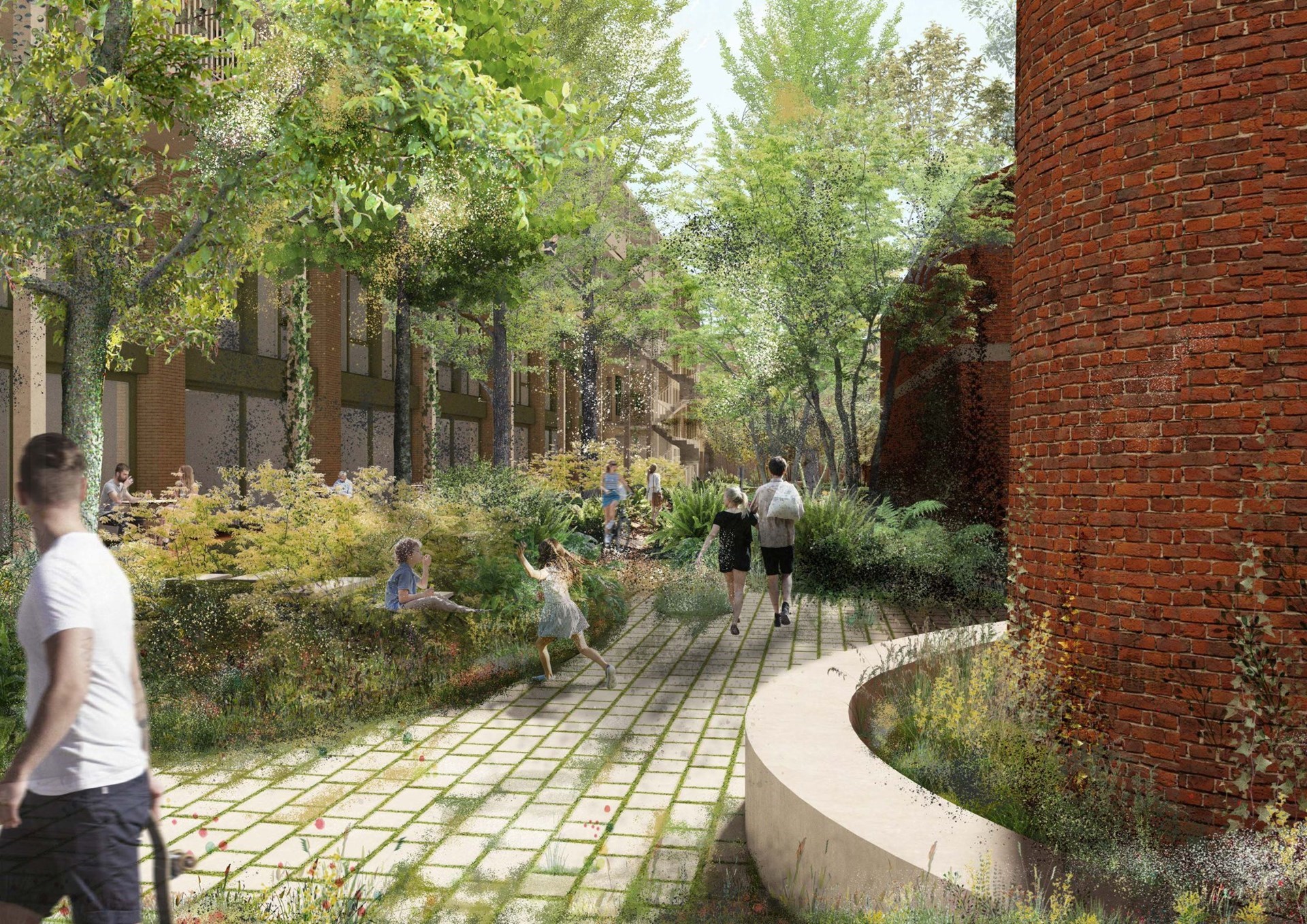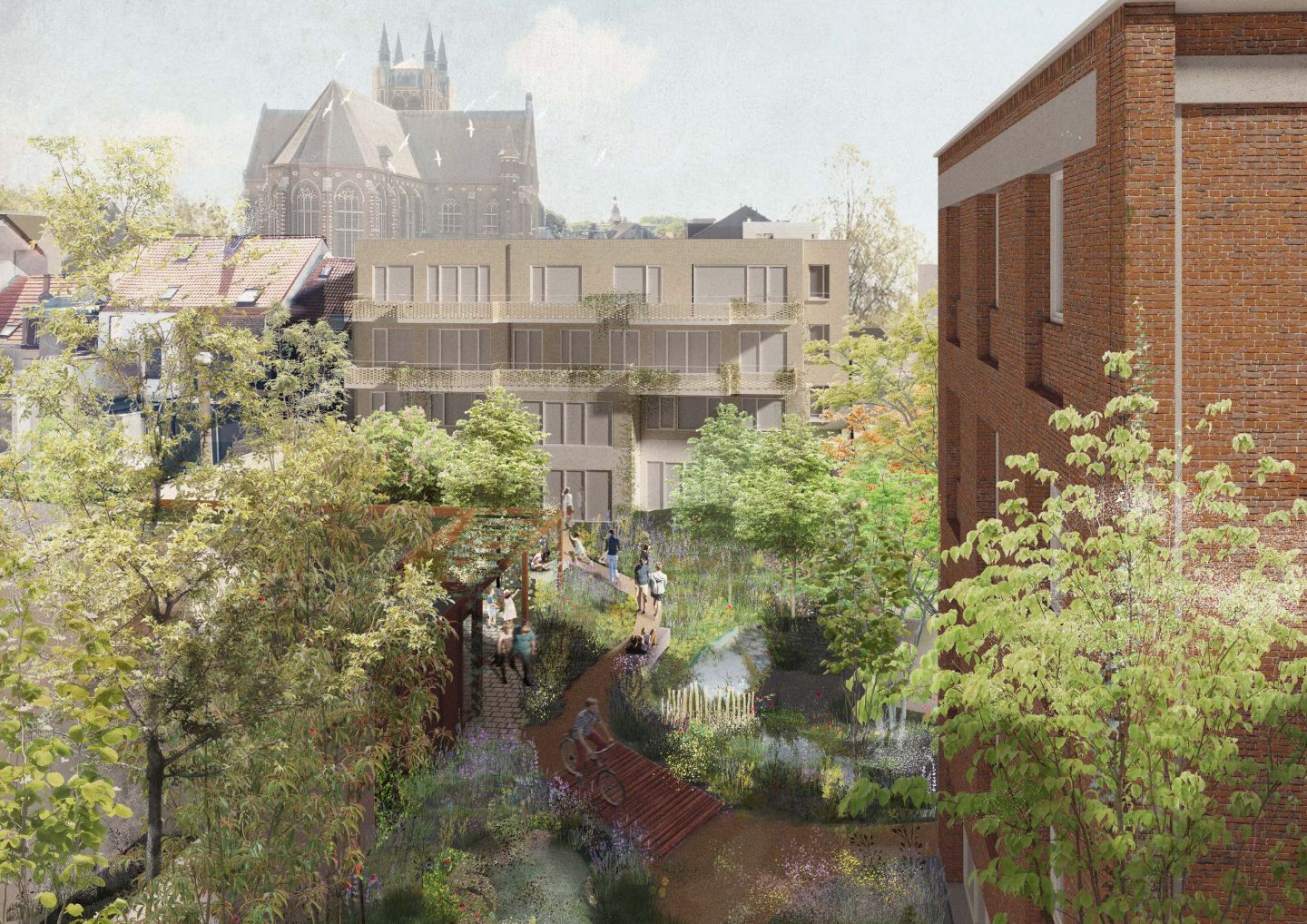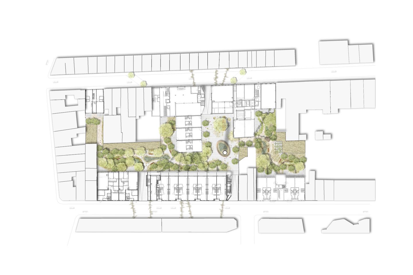 Bij de uitwerking van het project gaat de aandacht van de ontwerpers ook naar de open ruimte tussen de gebouwen. De groene binnenruimte tussen de woningen wordt met stadsnatuur ingericht. Deze ‘Wastuin’ wordt gedeeld door alle bewoners. Met een rijkdom aan begroening zorgt de tuin voor rust en verbinding tussen de bewoners en genereert verschillende ecosysteemdiensten. Biodiversiteit op een kleine stedelijke schaal brengt in dit project iedereen dichter bij de natuur en bij mekaar.
