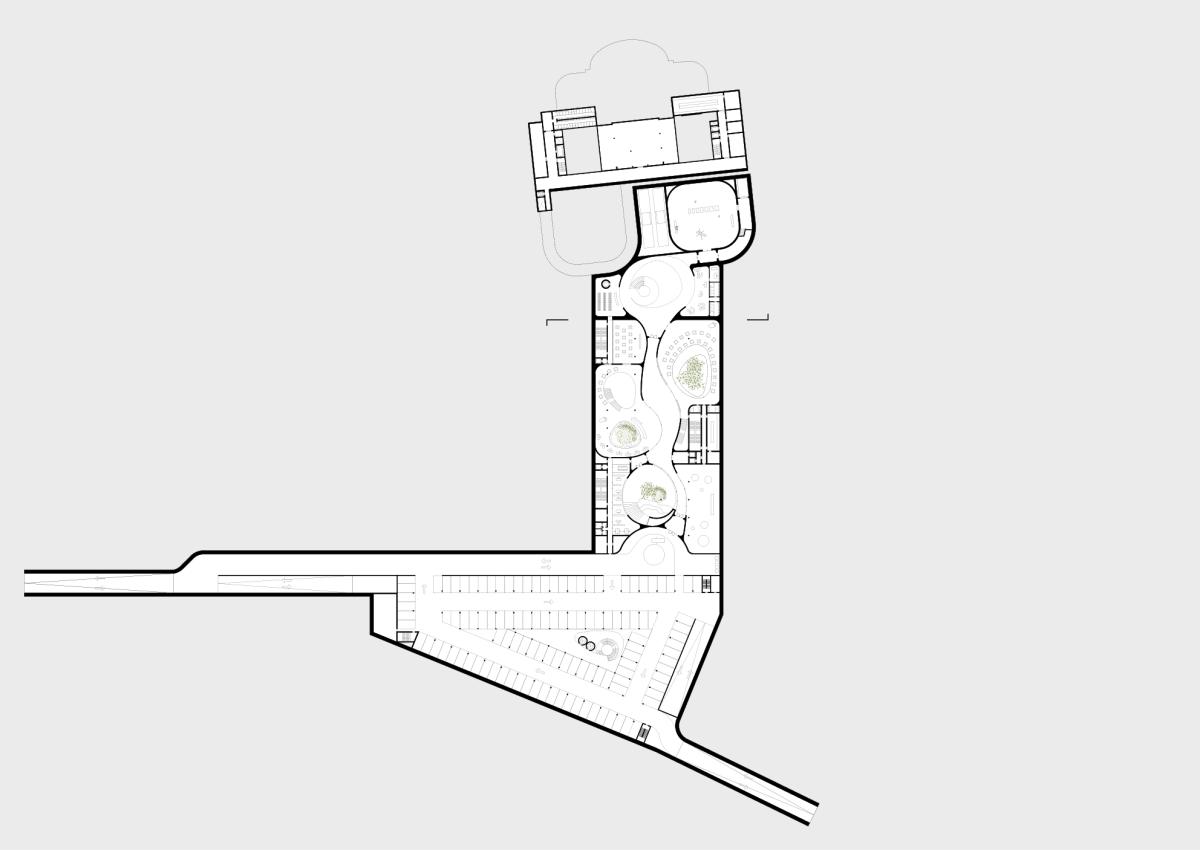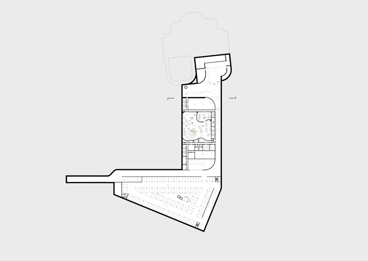 Via de tussenzone is er toegang tot de ondergrondse voorzieningen, waaronder het casino zelf. Dit voldoet aan de Belgische wetgeving, die gokken enkel toestaat zolang de toestellen niet zichtbaar zijn. Een lange hellende baan maakt ondergronds parkeren en afzetten van gasten mogelijk, terwijl vrachtwagens een apart los- en laadgedeelte hebben om de buurt te ontlasten.
