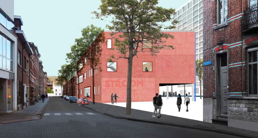 Aan de Vaartkom in Leuven is zopas de eerste steen gelegd van de vernieuwende secundaire school STROOM, naar een ontwerp van Tom Cortoos Architecten. De nieuwbouw zal onderdak bieden aan de twaalf klassen van deze eerstegraadsschool. Het innovatieve onderwijsproject met veel aandacht voor flexuren, projectweken en workshops vormt de basis voor de planopbouw. Naast de klassieke klassen wordt er op iedere verdieping een heus ‘leerlandschap’ gecreëerd dat de nodige ruimte biedt voor interactie, zelfstudie en groepswerk. Op het gelijkvloers bevindt zich de polyvalente ruimte in direct contact met de buitenruimte.