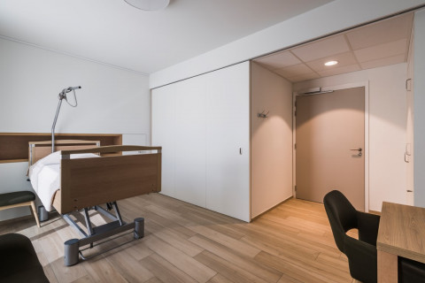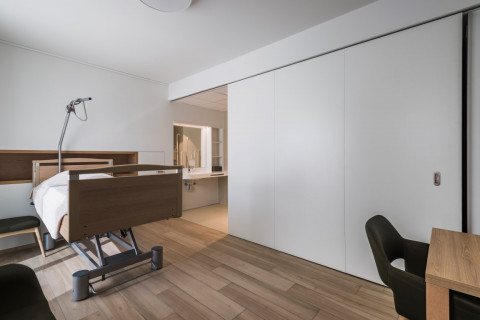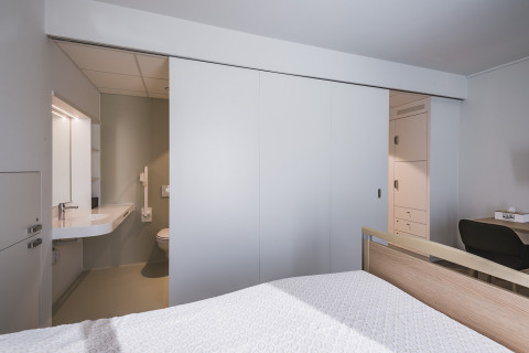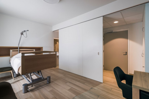 We maakten eerder het onderscheid tussen designoplossingen (opbouw/zichtbaar) en minimalistische schuifdeuren (inbouw/onzichtbaar). In de zorg worden in dit opzicht vaak symmetrische en telescopische schuifdeuren gebruikt. Hier draait het meestal niet om het esthetische karakter, wel om de functionaliteit en het duurzame aspect. Dat is toch zeker het geval als het gaat over het overbruggen van bredere openingen.