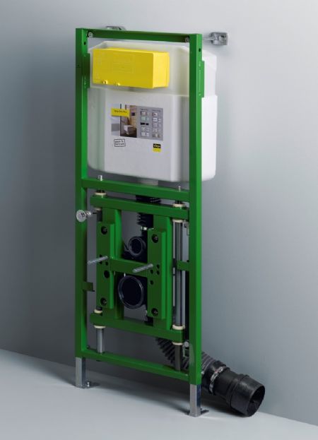 Viega heeft een in de hoogte verstelbaar wc-element ontwikkeld met voorwandmontage. ‘Eco Plus’ is een troef voor ziekenhuizen of rusthuizen, maar past ook perfect bij de in opmars zijnde ‘meergeneratiewoningen’. Al die verschillende noden vragen om flexibele oplossingen in de woninginrichting. Het toilet kan telkens met één druk op de knop traploos en zonder elektronische aandrijving in de hoogte worden versteld.