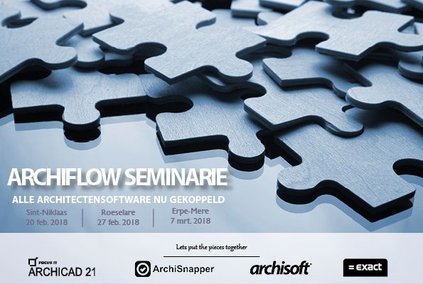 Archicad, Archisoft, Archisnapper en Exact online slaan de handen in elkaar om de architect terug de tijd te geven om architect zijn. Op het Archiflow Seminarie stellen de vier ontwikkelaars een unieke koppeling voor die architecten heel wat tijd zal besparen.