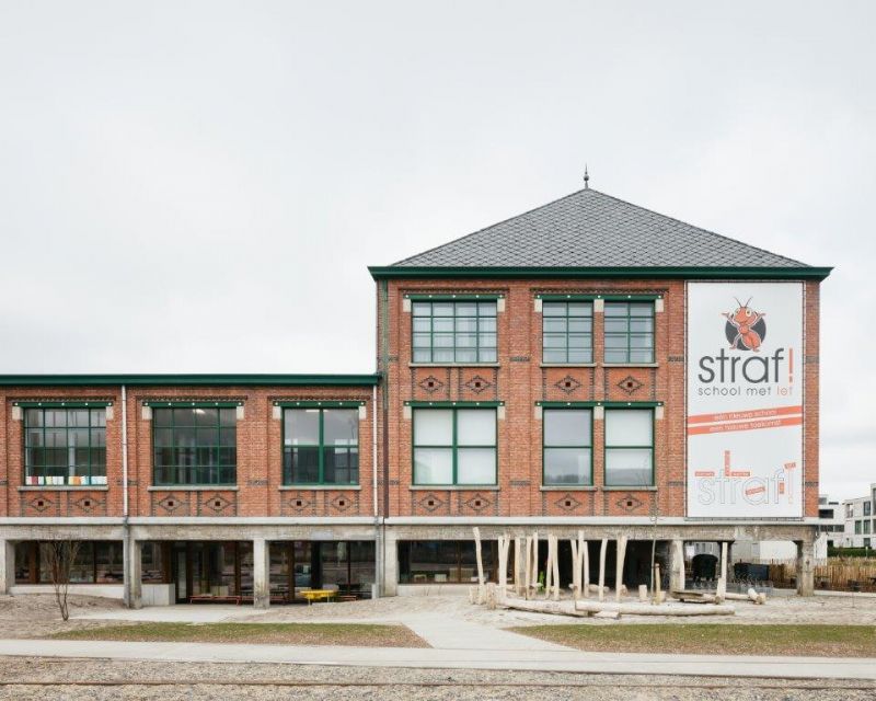 Een tweede kanshebber is Straf! School met lef in Beringen ontworpen door a2o en AAC Architecture. Het vestiairegebouw van de voormalige mijnsite in Beringen kreeg een tweede leven als kleuter- en basisschool. In het ontwerp is uitgegaan van een maximale expressie van het bestaande gebouw. Ruimtelijk en fysiek worden er verbindingen gemaakt binnen de bestaande structuur. Er wordt een intelligent groeiscenario voorgesteld voor zowel de school als de buitenaanleg. De renovatie dient met gepaste eenvoud het pedagogische project. Dit schoolproject won eerder dit jaar ook al een Belgian Building Award.