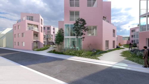 De woningen variëren van één- tot driekamerappartementen, geschikt voor een mix van gezinnen, koppels en ouderen. Commerciële functies kunnen eenvoudig aan de gelijkvloerse lagen worden toegevoegd om het straatleven te activeren. Het prefab betonnen skelet maakt toekomstige aanpassingen van plattegronden mogelijk, terwijl elk appartement gegarandeerd natuurlijk licht en ventilatie krijgt. Ondergronds komen de verplichte parkeerplaatsen, opslag en een regenwaterbuffer, maar de structuur is voorbereid om later herbestemd te worden. Zo verenigt het plan flexibiliteit, duurzaamheid en een betere aansluiting tussen de gemeente en haar inwoners.