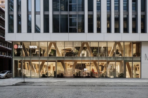 Het nieuwe JLL-hoofdkantoor in Brussel vertaalt het idee van de stad naar de werkplek: vergaderruimtes en kantoren zijn vormgegeven als afzonderlijke ‘gebouwen’ die verbonden worden door straten, pleinen en een centraal parkachtig forum. Dit forum, met houten kolommen als ‘bomen’ en veel groen, vormt het hart van de werkplek en stimuleert ontmoeting en creativiteit. De stedelijke metafoor brengt de verschillende bedrijfseenheden van JLL samen en moedigt mobiliteit en spontane interactie aan.