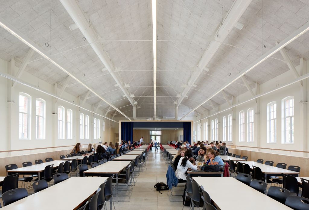 De gebouwen van de derde graad op campus Kaai zijn dan weer grondig vernieuwd: de neogotische feestzaal werd grondig onder handen genomen en is vanaf nu een refter.