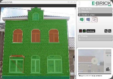 De Exterior makeover vind je op www.e-brick.be. Het volstaat om een foto van het te renoveren huis op te laden in de simulator. Na het volgen van een aantal instructies, kan je het resultaat “voor” en “na” bekijken. Wanneer de makeover geslaagd is, kan je deze in de “Hall of Fame” zetten. Je kan hier nu al een aantal voorbeelden bekijken van mooie E-brick renovaties.