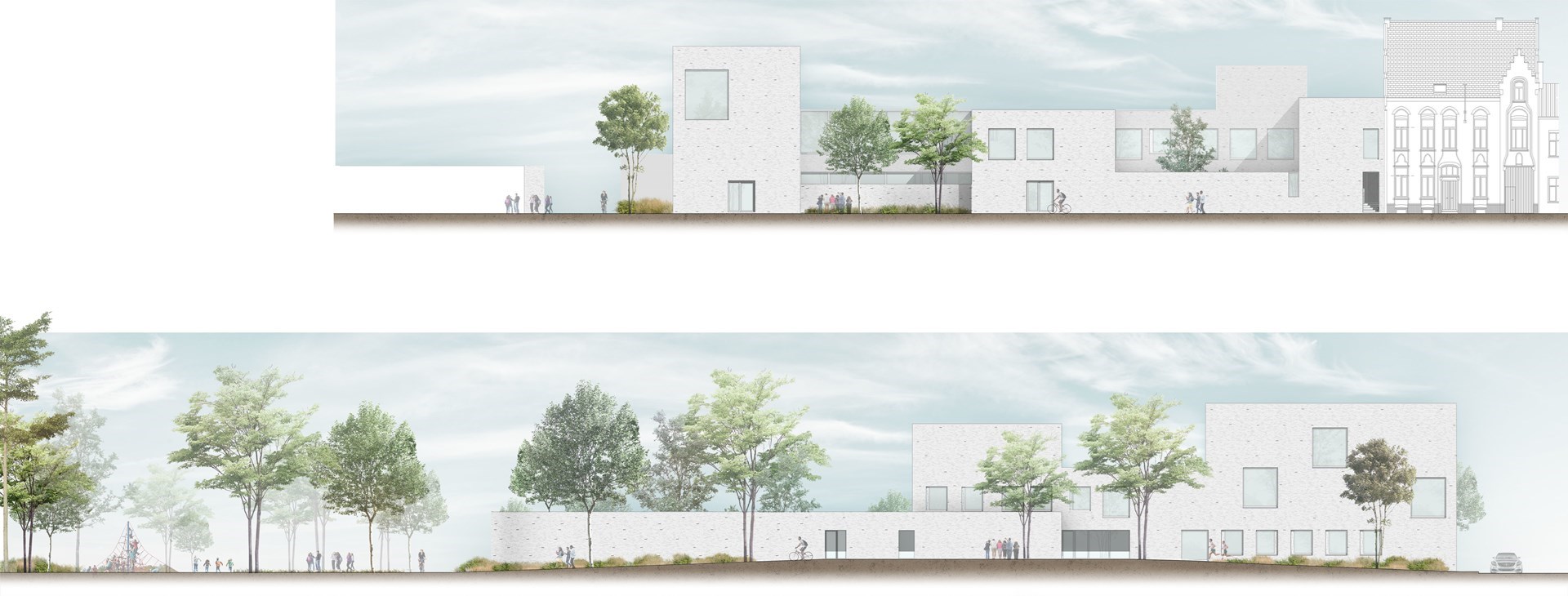 De nieuwbouw vormt samen met het aanpalende Psychiatrisch Ziekenhuis H. Familie een centraal gelegen campus met een gespecialiseerd aanbod voor zowel kinderen, jongeren als volwassenen met een psychische kwetsbaarheid.