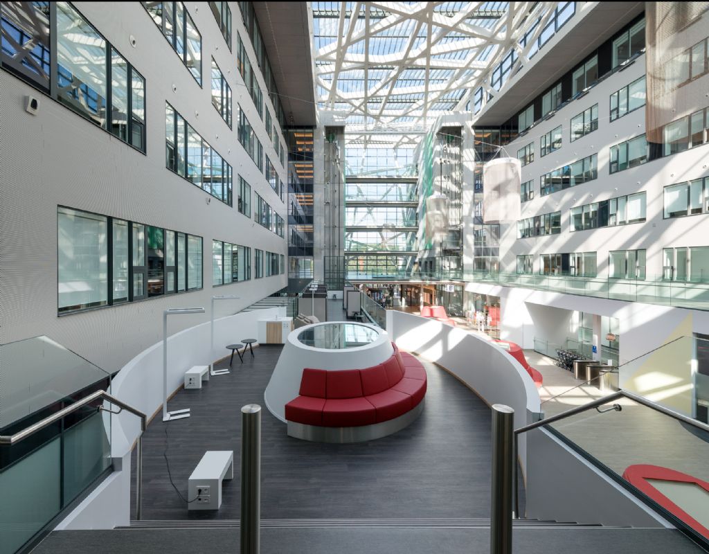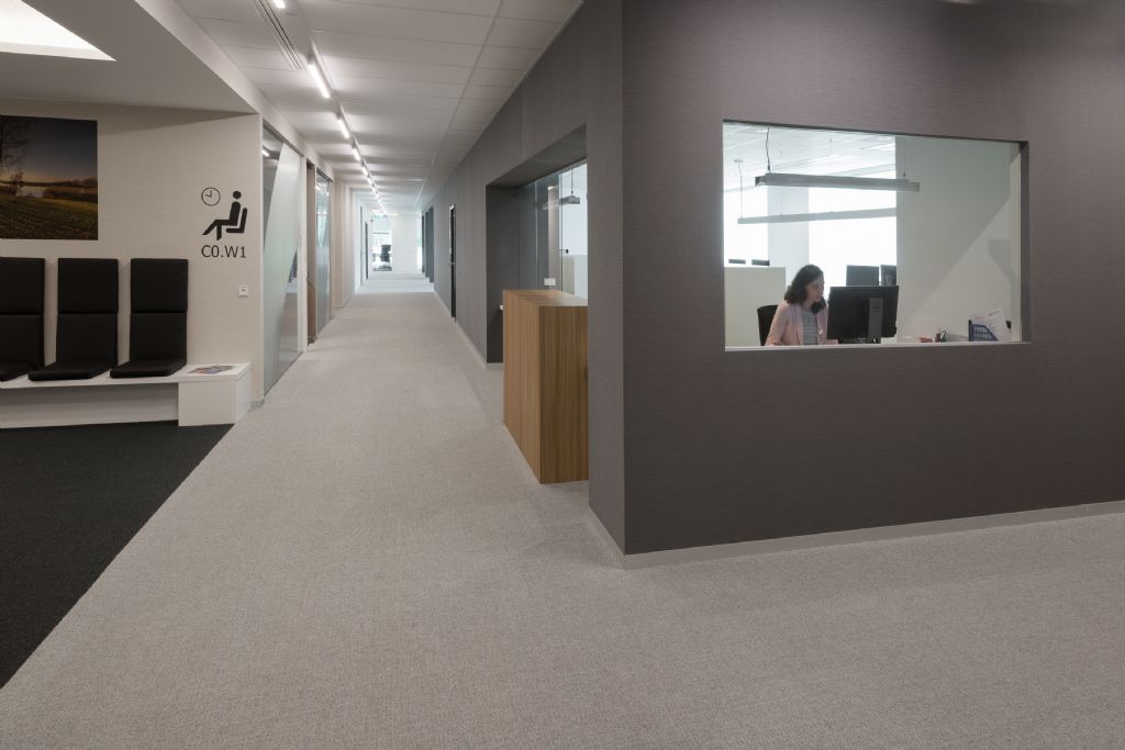 De Cradle to Cradle® gecertificeerde tapijttegel DESSO AirMaster® in de administratieve ruimtes, brengt functionaliteit en design naar een volgend niveau. De gepatenteerde technologie maakt het mogelijk fijnstof uit de lucht te filteren op een meer effectieve wijze dan andere vloeroplossingen.