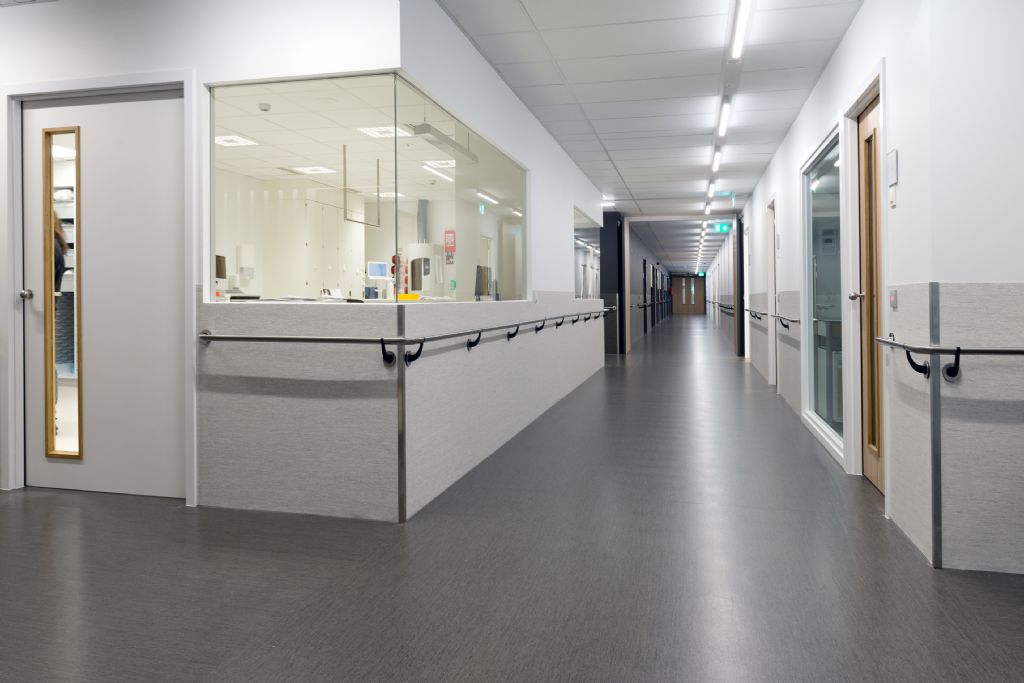 Door overal dezelfde lichte en donkerdere kleur te combineren, kreeg het ziekenhuis een strakke en tegelijk huiselijke uitstraling. De beleving voor zowel patiënten, bezoekers als voor personeel stonden centraal bij de kleurkeuze. De gekozen vloerbekledingen hebben de laagste “life cycle cost”