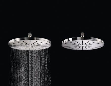 De ronde hoofddouche 060, zoals het nieuwe product heet, kan aan het plafond of tegen de muur gemonteerd worden. De douche kan per minuut 24 liter of 15 liter water uitstoten, met een druk van 3 bar. De technische onderdelen zijn subtiel aan het oog ontrokken.