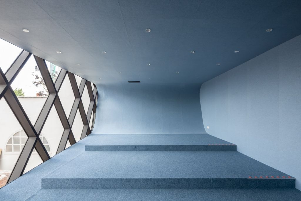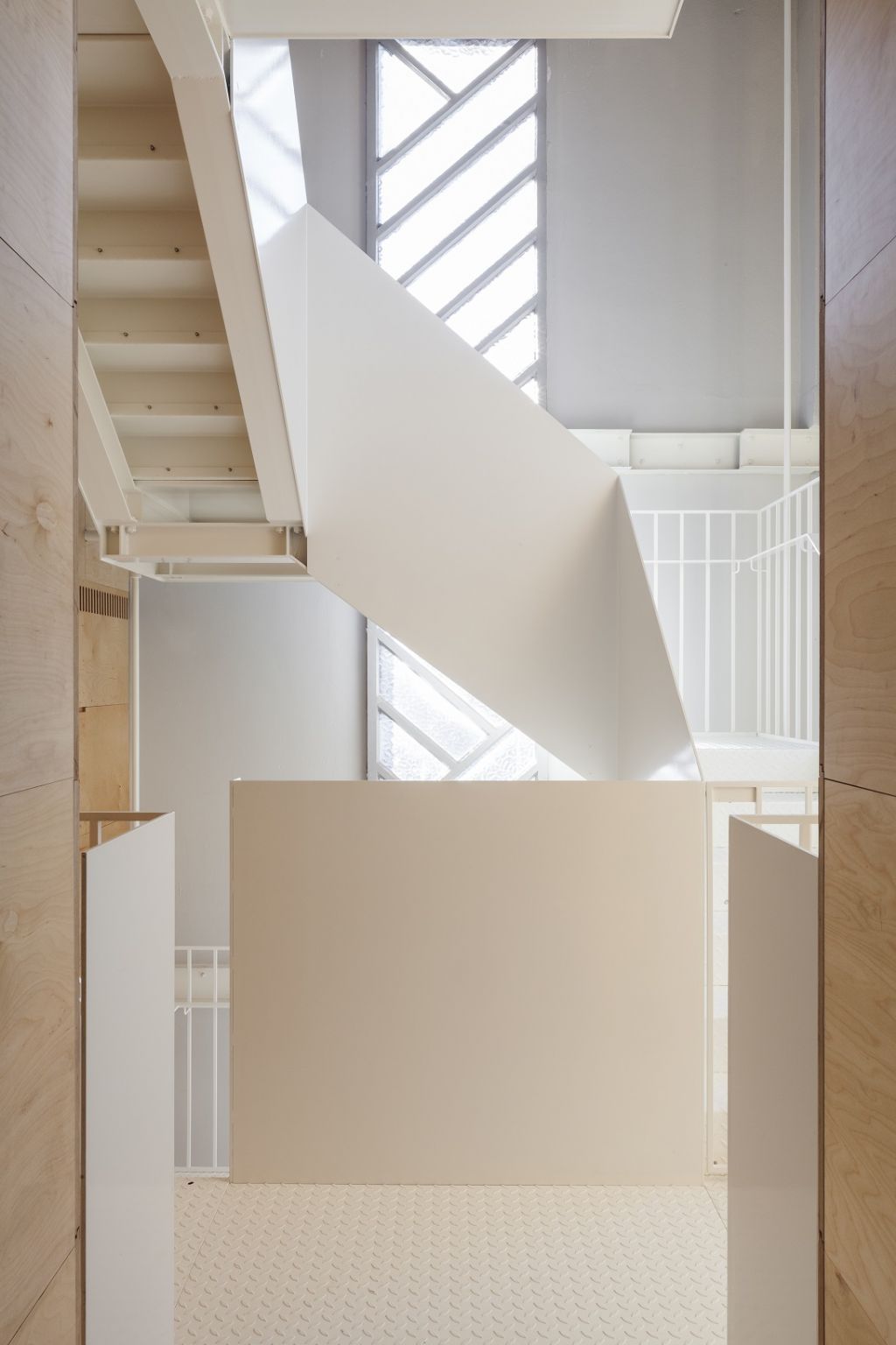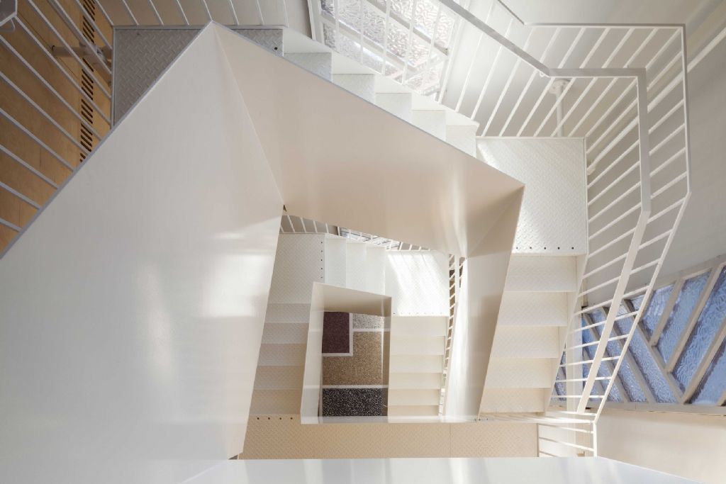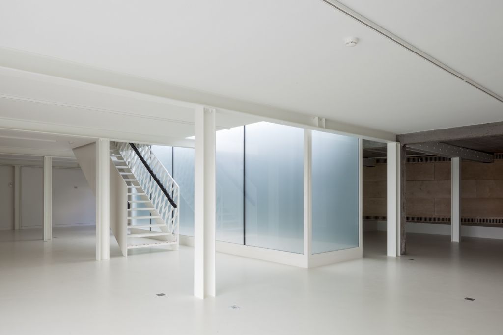 Een museumbezoek start in de oude leveringszone. Deze binnenstraat leent zich als handige verkeerswisselaar: het scheidt en verbindt het voorgebouw met de achterliggende fabriekshal, die in een uitbreidingsfase bij het museum wordt geïntegreerd. Vanuit de binnenstraat ga je met de lift naar het dakniveau, om vervolgens via een tentoonstellingsparcours doorheen het gebouw af te dalen.