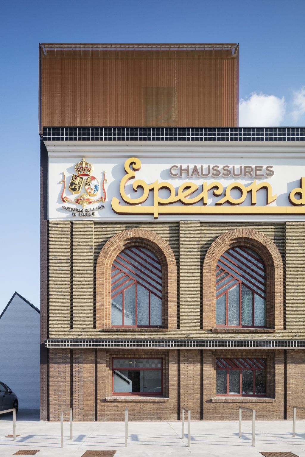 Eperon d’Or, de voormalige schoenfabriek in Izegem, heeft zopas de Onroerenderfgoedprijs 2018 gewonnen. De transformatie van het nationaal schoeisel- en borstelmuseum kaapte ook de Publieksprijs weg op basis van een poll waaraan bijna 10.000 mensen deelnamen. De restauratie en renovatie van het art-decogebouw en de achterliggende fabriekshallen was in handen van het ontwerpteam Compagnie O Architects + Sabine Okkerse + Geert Pauwels. Het team is aangesteld via de Open Oproep procedure van de Vlaams Bouwmeester.
