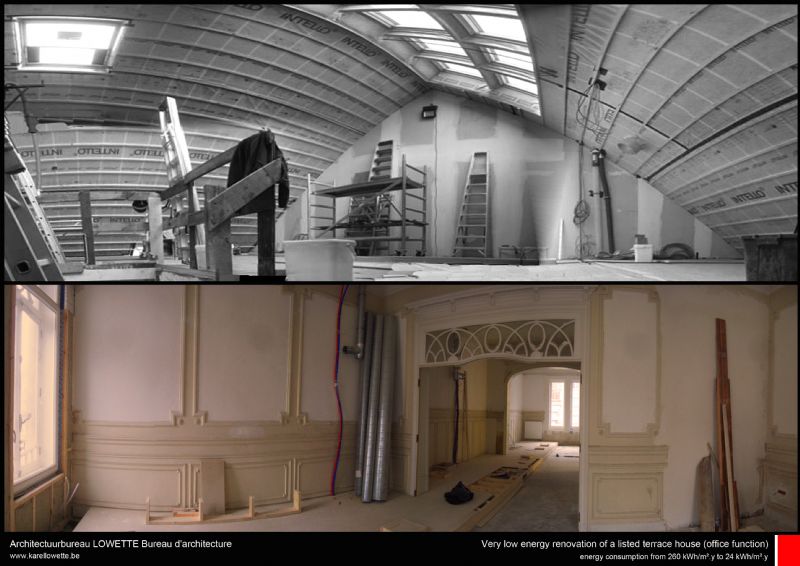 Tijdens de presentatie van architectuurbureau Lowette zullen al deze vragen beantwoord worden aan de hand van een case study: de duurzame renovatie van een kantoor, gevestigd in een herenhuis in Brussel (genomineerd voor de Greenov Award 2014, categorie renovatie). Dankzij een totaalaanpak zijn de verschillende aspecten van duurzaamheid aangekaart en afgetoetst aan het rijke historische karakter van het gebouw. De kasten zijn zo ontworpen dat de volledige mechanische ventilatie in de meubels geïntegreerd is. Alle technieken zijn geconcentreerd in een gedeeltelijk verhoogde vloer. Er zijn zo veel mogelijk bio-ecologische materialen gebruikt. Een expert biodiversiteit is ingeschakeld voor de plantenkeuze. Drie blowerdoortests zijn uitgevoerd om o.a. de invloed van de te behouden elementen in te schatten. De schouwen zijn ontdubbeld aangezien ze bovendaks behouden blijven. Er is een kosten-batenanalyse gemaakt van alle ingrepen.