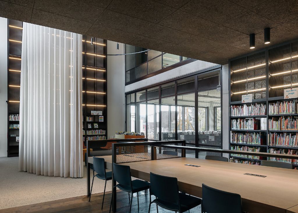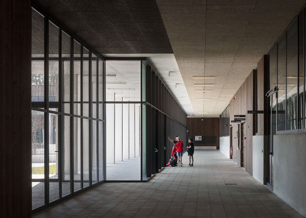 Het interieurontwerp vervolledigt en versterkt het totaalconcept. POLO interior design kiest voor uniform materiaalgebruik en een heldere vormelijke taal om een gevoel van samenhang en continuïteit te creëren. Er wordt bewust getracht om de grenzen te laten vervagen; zowel tussen binnen en buiten, zowel tussen de verschillende functies. Ook het weldoordachte lichtontwerp (zowel binnen als buiten) en de buitenaanleg van het omringende park en het vrijetijdsplein hebben dezelfde doelstelling.
