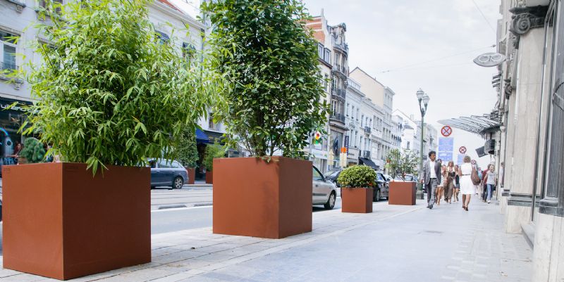 Ook de Brusselse Louizalaan bijvoorbeeld, werd verfraaid met plantenbakken in Cortenstaal van de hand van WALFiLii.