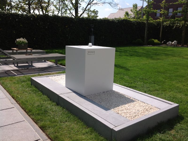 Met de watertafel creëer je een fonteineffect in de tuin of op het terras zonder externe wateraanvoer. Prijs: vanaf 810 euro (btw niet inbegrepen).