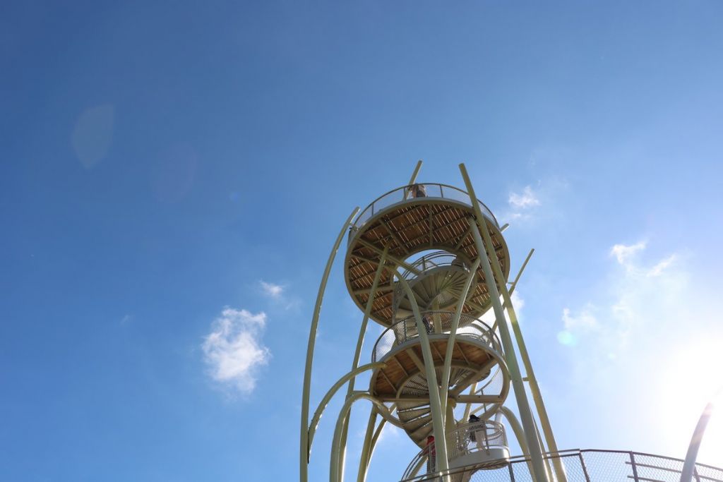 De uitkijktoren zorgt voor een goede beleving van het volledige natuurgebied vanuit de lucht, maar biedt de passanten ook een uitgelezen kijk op het kustlandschap en de zee.