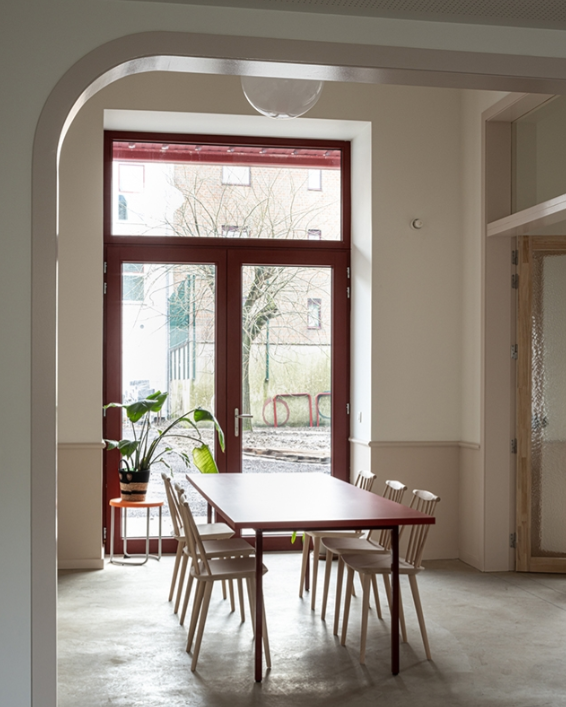 De architecten gebruikten de sterke basis van het oude schoolgebouw met de ritmische gevel en de logische opbouw, maar ontdeden het volume van alle storende aanbouwen. Door deze vereenvoudiging valt het daglicht weer ongehinderd binnen, wat de leesbaarheid van het plan ten goede komt. Het typische instellingsgevoel is weggewerkt door de ruimtes op maat van de jongeren te ontwerpen. Een doordacht materiaalgebruik en gerichte zichtlijnen zorgen ervoor dat de functionele werkomgeving voor begeleiders naadloos samensmelt met een warme thuis voor de bewoners.