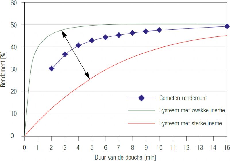 Het thermische rendement van het warmteterugwinningssysteem is de verhouding tussen het warmteverlies van het afvalwater en het verschil tussen de ingangstemperatuur van het afvalwater en die van het koude water in het toestel. De meeste op de markt verkrijgbare modellen beschikken over een door het gelijknamige certificatieorganisme toegekend Kiwa-certificaat, dat de rendementen voor verschillende gebruiksdebieten vermeldt. De recente modellen behalen thermische rendementen van 25 tot 70 %.