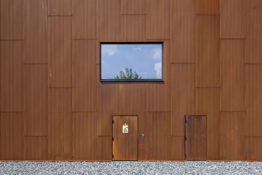 Voor de materiaalkeuze werd geopteerd voor cortenstaal, wat zorgt voor een uniek en continu veranderend effect op de gevel. Door zijn opvallend roestbruin uiterlijk vormt het een compromisloos materiaal dat bijdraagt tot een krachtige vormgeving. Bovendien varieert het van toonaard gedurende de jaren. Kortom: a building that will age gracefully! De gevels bestaan uit geribbelde cortenstaalpanelen en het bleek niet evident om een geschikte producent te vinden. Het nodige speurwerk leidde uiteindelijk naar Finland waar we een producent werd gevonden die de panelen kon vervaardigen volgens het less is more-principe dat Wastiau & Co en Wil-Ma voor ogen had.