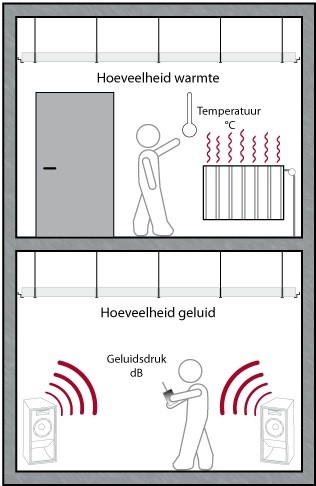 - Geluidisolatie (Hoeveel geluid wordt geblokkeerd tussen twee ruimtes?)