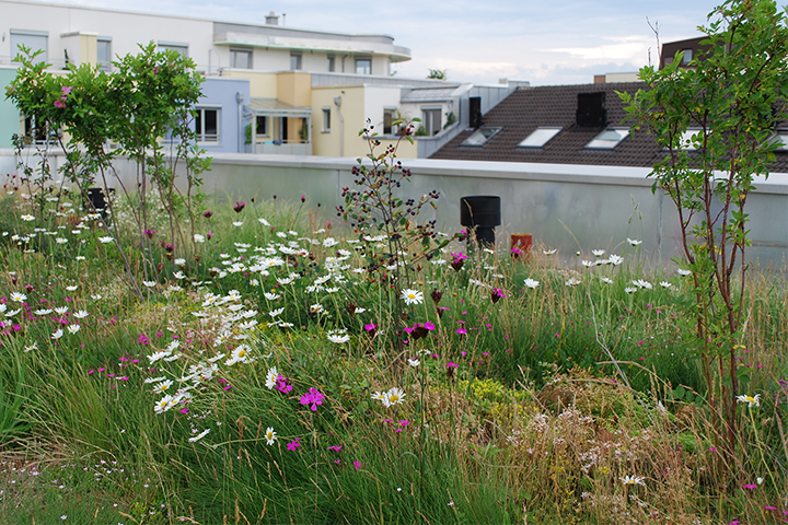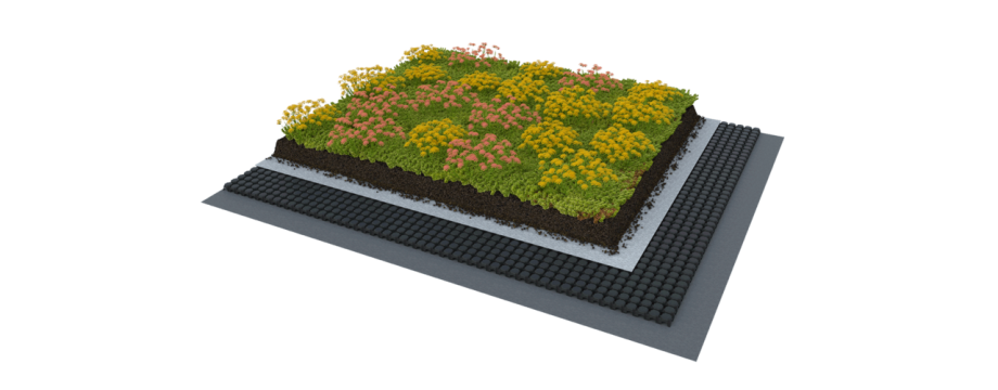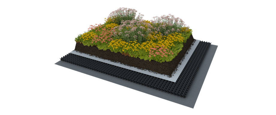 Optigrün introduceerde het biodivers natuurdak met een betere drainagelaag en een dikker substraat. Dit daktype ondersteunt een gevarieerde beplanting en draagt bij aan de biodiversiteit, doordat het lokale fauna aantrekt. Het biodivers natuurdak is niet alleen onderhoudsvriendelijker, maar biedt ook een levendig uitzicht en voldoet gemakkelijk aan de waterbergingsvereisten van de hemelwaterverordening met een capaciteit van 57,40 liter per vierkante meter.