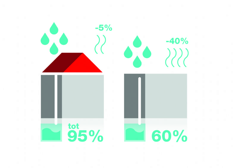 Drinkbaar water is een kostbaar goed dat niet eindeloos beschikbaar is. "Een hellend dak in kleidakpannen is daarom ideaal om regenwater op te vangen," weet Wienerberger. "Algemeen mogen we stellen dat we 95% van het regenwater dat op een keramisch hellend dak valt, kunnen opvangen voor hergebruik. Uiteraard kunnen daar beperkte verschillen in optreden afhankelijk van de helling en oriëntatie van het hellend dak. Het opgevangen water blijft bovendien helder en is niet chemisch verontreinigd, want kleidakpannen geven geen schadelijke stoffen af. Het hergebruik van regenwater is niet alleen goed voor onze drinkwatervoorraden, maar voorkomt ook dat er veel regenwater moet worden afgevoerd. Zo vermijden we dat de riolering of lokale waterlopen te zwaar worden belast, wat aanleiding kan geven tot wateroverlast."