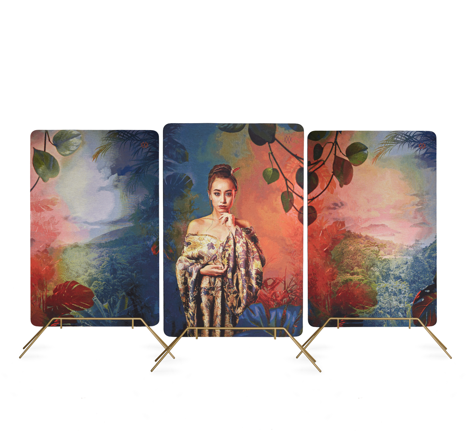 Torrelle hecht dan ook waarde aan de functionaliteit van haar decoratiestukken. De ontwerpen van Meisterwerke dienen niet enkel als wanddecoratie, maar ook als kamerschermen, gemonteerd in een elegante metalen voetsteun.