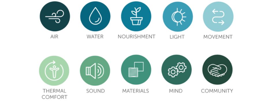 Naast de vertrouwde concepten voor de architect en bouwheer zoals lucht, water, licht, thermisch comfort, akoestiek en materialen, gaat WELL ook dieper in op voeding, beweging, geest en gemeenschap. Ook hiervoor zijn er ontwerpstrategieën om aan deze concepten tegemoet te komen.