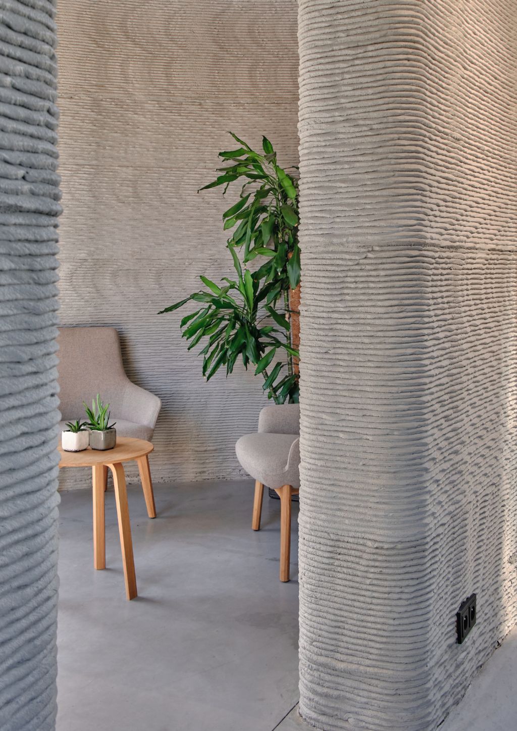 “Toen we aan de bouw begonnen, wisten we niet welke functie het gebouw zou krijgen, het doel was de oppervlakte, hoogte en vorm van een gemiddelde hedendaagse woning te printen, maar dan als een demogebouw met multifunctionele mogelijkheden. Dit is een principe van circulair bouwen. Het kan zowel als woning, vergaderruimte, kantoor of exporuimte fungeren. Het gebouw kan vanaf september worden bezocht op afspraak,” zegt Piet Wielemans, architect bij Kamp C.