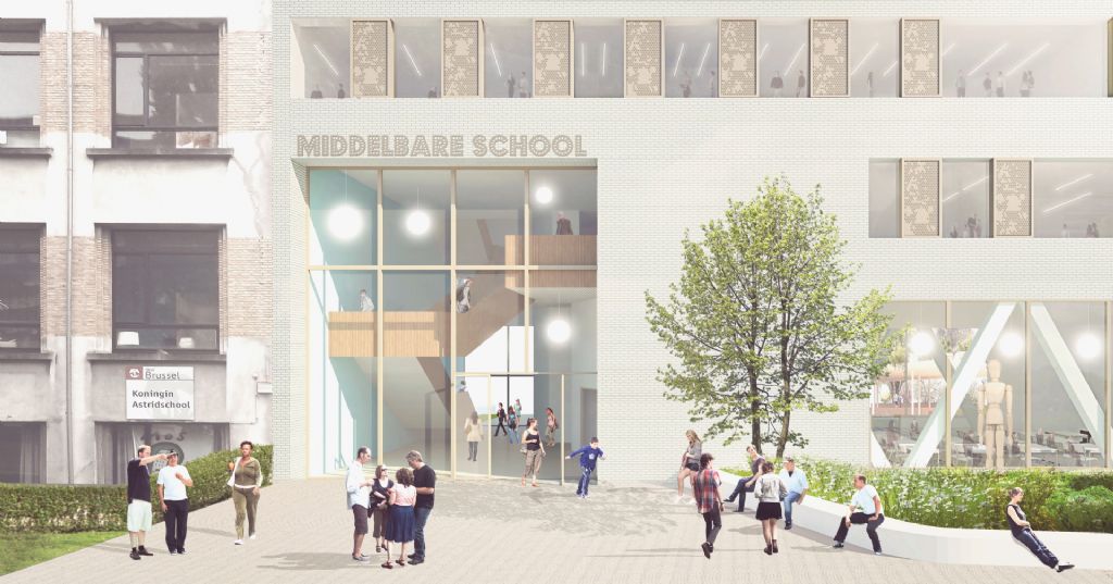 In Laken is MBG onlangs gestart met de bouw van Campus Mutsaard. Dit nieuwe Nederlandstalige scholencomplex ontworpen door LOW architecten i.s.m. VK Architects & Engineers en Bureau B+B, zal een basisschool, middelbare school, twee sportzalen en een kinderdagverblijf huisvesten. De ontwerpers zetten sterk in op architecturale ingrepen die de kwaliteit van het lesgeven en het schoolgebeuren verhogen. Zo is er veel aandacht besteed aan de buitenruimte die veel meer is dan een gewone speelplaats. Het project won in 2018 de ‘Be.Exemplary’-prijs.