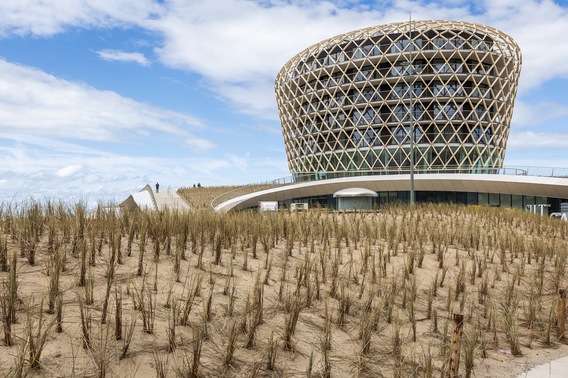 Een hoofdbekommernis voor ZJA betrof de zichtlijnen vanuit de woongebouwen rond het Epernayplein. “We wilden ervoor zorgen dat de meeste appartementen hun vrije uitzicht op de zee konden behouden,” verduidelijkt Reinald Top. “Qua vormgeving wilden we van de hoteltoren een soort filigraan element maken: geen massief volume, maar net iets heel transparant." De voorbeeldige integratie van de architectuur met zowel de bestaande bebouwing als het natuurlijke landschap is dan ook een van de kernkwaliteiten van het ontwerp.