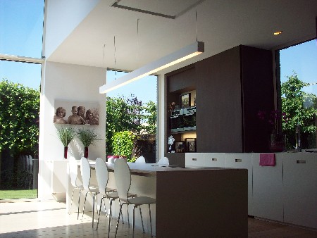 Het is een “all in one” woning waar wonen, werken en ontspannen met een maximaal comfort glooiend in elkaar vloeien.