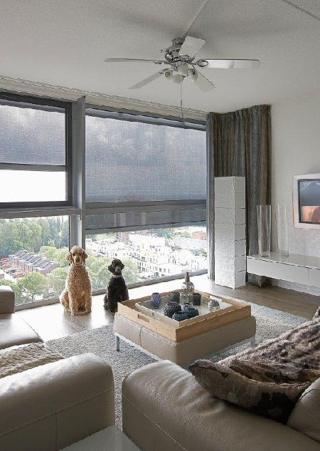 “Zon- en windsensoren op de oost-, zuid- en westgevel bepalen per gevel wanneer alle screens neergelaten en opgerold worden,” zegt Hendrik Dijkstra van De Haan-Westerhoff. “Ons besturingssysteem laat elke bewoner toe, om de screens ook apart te bedienen, maar bij een te hoge windbelasting worden alle screens automatisch opgerold.”