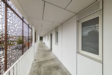 Kalken, deelgemeente van Laarne, is sinds kort een opmerkelijke eyecatcher rijker. Langs de Dendermondsesteenweg pronkt een gloednieuwe en vooral atypische Spar, inclusief eet- en drinkgelegenheid. Bovenop de supermarkt integreerde Martens Van Caimere Architecten 9 woonunits. De strakke gevel met glas, beton, vezelcement en wit staal als basiselementen wordt vanaf het eerste niveau helemaal omhuld door geperforeerd cortenstaal, wat het geheel een bijzonder architecturaal karakter geeft. Even bijzonder, maar niet zichtbaar, is het vernuftig geïntegreerde technische verhaal waarbij warmterecuperatie centraal staat. Een knap staaltje ruimtelijke rendement.