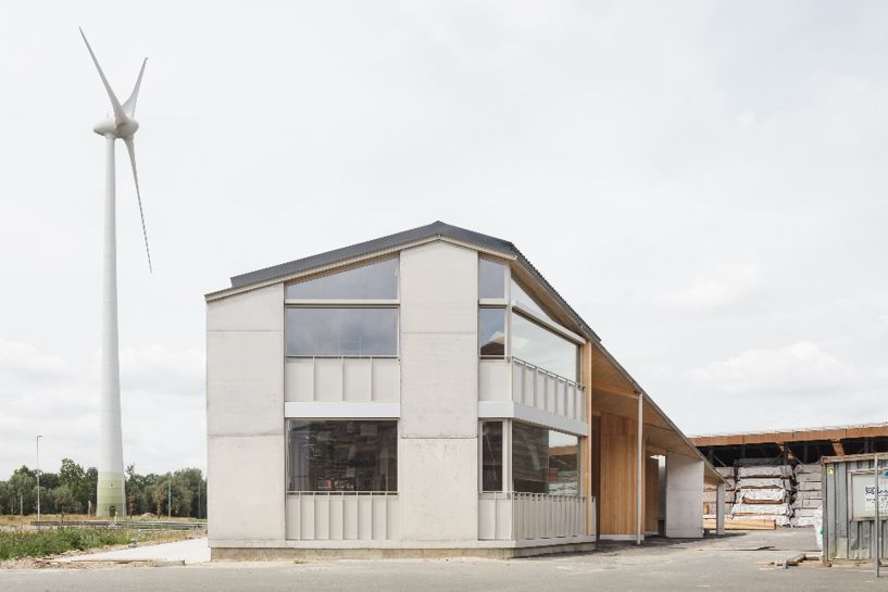Als alternatief voor een generisch kantoorgebouw dat tussen de grootschalige loodsen onmogelijk representatief zou zijn, herinnert het gebouw aan een loods. Het gebouw zingt mee met de context. Maar het is een veelzijdig karakter dat afhankelijk van het standpunt ook als huis kan worden gelezen. Elke werkplek krijgt een eigen buitenruimte en het licht gebeitst hout voorkomt de neutraliteit van een genormeerde werkplek.