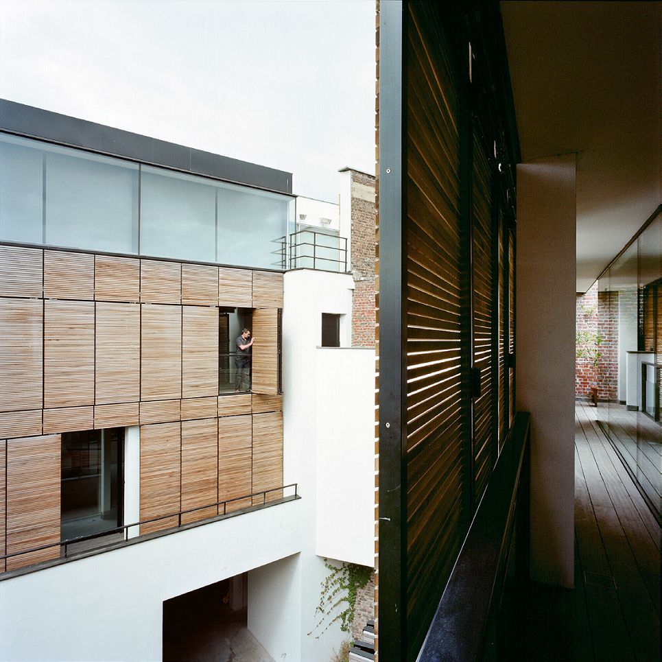 De ontwerpers braken midden in het perceel een stuk af zodat er twee volumes overbleven, gescheiden door een binnenkoer. Elk van die volumes behield een centrale patio waarrond per verdieping twee lofts werden ingericht. Het herenhuis werd in drie appartementen opgedeeld. Een van de grootste uitdagingen was het openwerken van het dichtbebouwde perceel. Elke woning heeft een eigen terras, maar het is de gemeenschappelijke buitenruimte die het project stuurt.