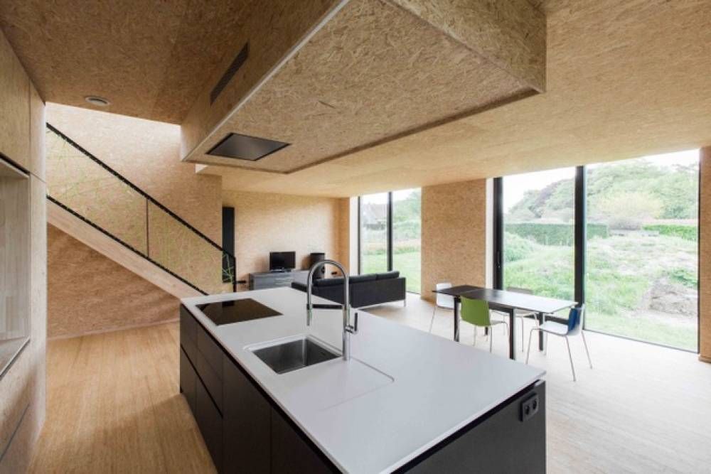 - Binnenafwerkingsplatenwanden en plafonds en verdiepingsvloeren : OSB zeroformaldehyde /Leidingspouwen : latwerk voor uitvulling en tengellatten